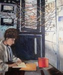 The place, where Karla lives, never feels like home to her. As she relocated many times during her childhood, she has no roots. The feeling of not belonging is symbolized by the ghosts that haunt her paintings, as if, every room she goes to, there is already someone else, no place to hide, no place to settle.